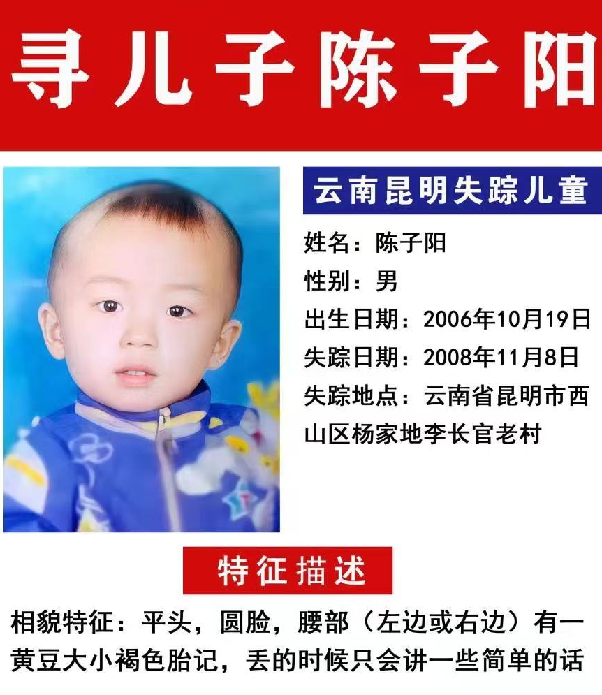 14年来,尽管我手里的凭证,只有子阳2岁时的照片,还有腰上的胎记,但面对无边的征途,我依然怀揣着信心在寻子的路上坚持下去……