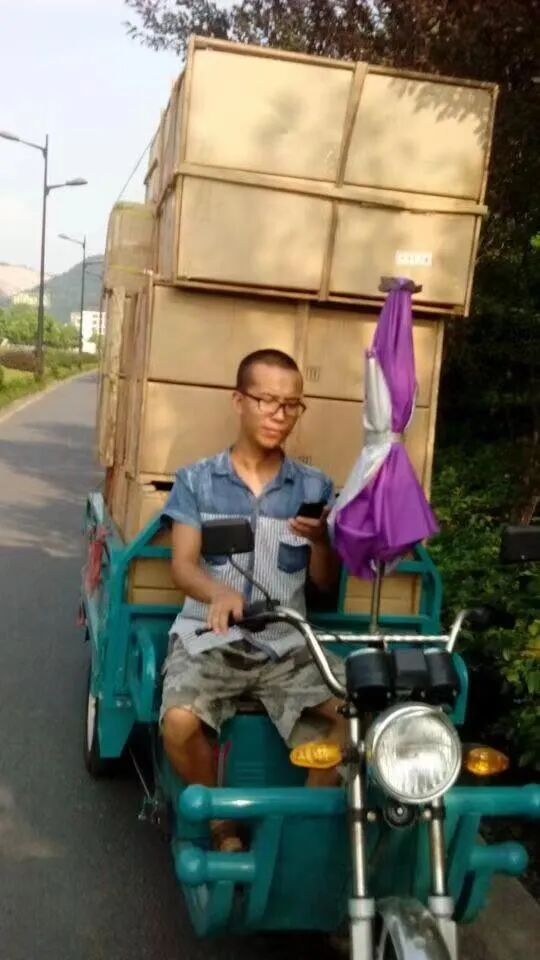 8月份,天非常热,我通常一边蹬着三轮车送货,一边拿着手机做客服,解答顾客的问题,虽然很辛苦,但我非常喜欢。