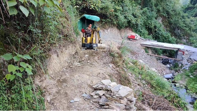 做这件事的初衷,本来是为了上山养鸡,但在每日前行的日子里,看着路一点点延伸,看着多年难走的沟坎被踏平,我觉得这件事情非常有意义。