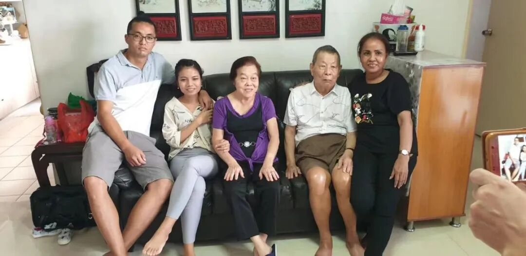 那时候公公也在新加坡打工,跟我老公生活在一起。公公是一个特别慈祥的人,很勤劳,也很爱笑。