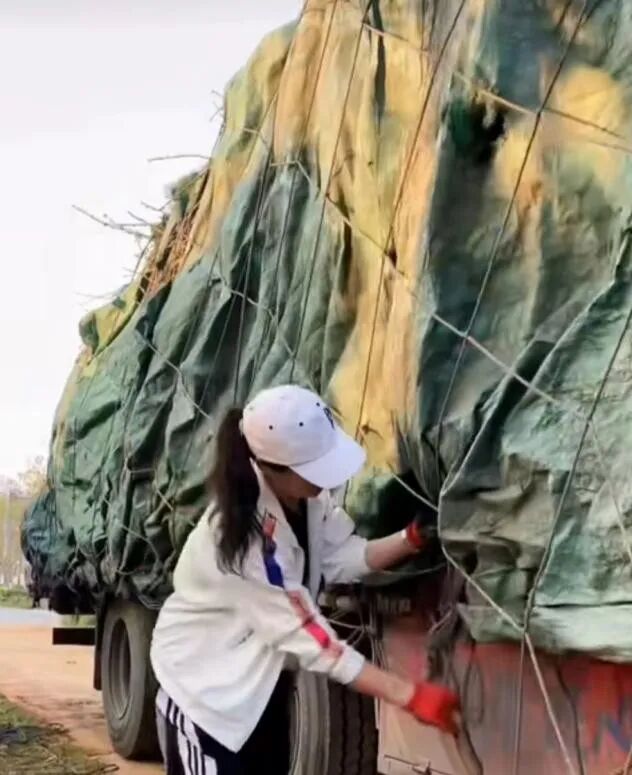 谁叫我是女汉子呢!除了能扛住病,还练就了一身“绝技武功”,可以在大卡车上“飞檐走壁”地盖雨布。