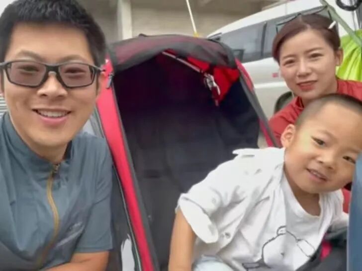 全程都是搭帐篷自己做饭吃,考虑到孩子小,怕路上照顾不周,商议之后由妻子把儿子送回家。
