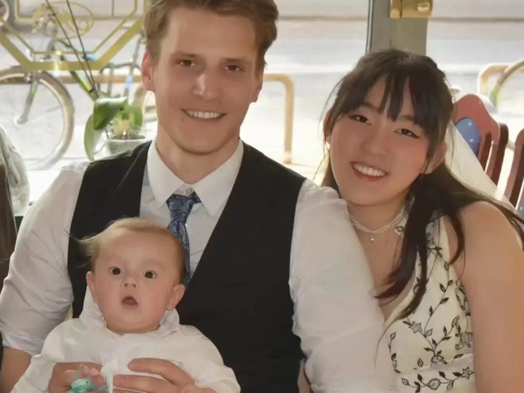 因为跨国婚姻手续复杂,还需要法院批准。最后我们带着4个月大的宝宝一起参加了我们的婚礼,我们觉得这很有意义。