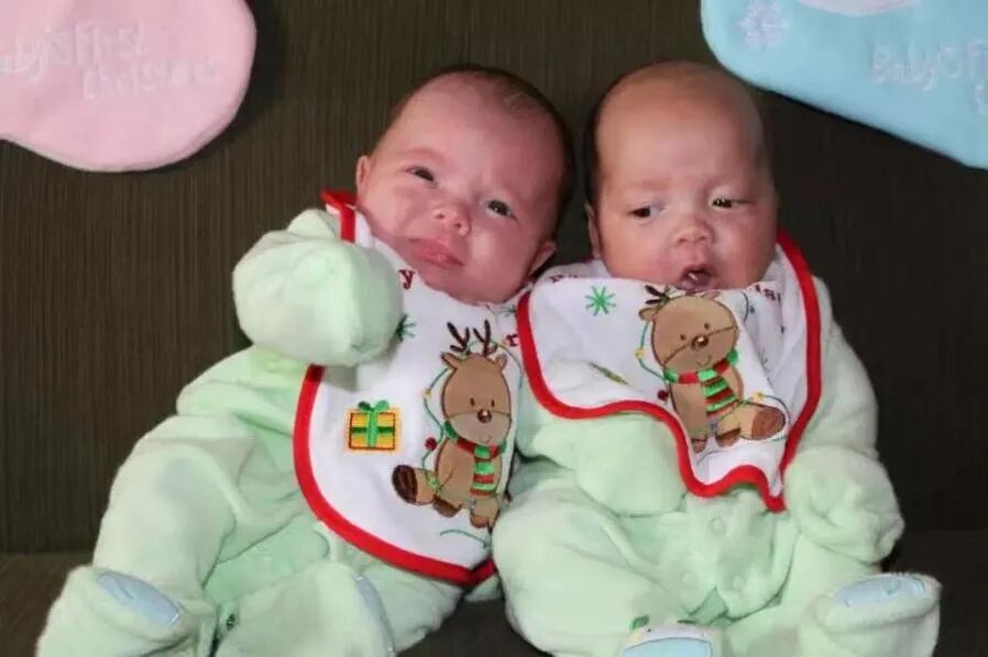 孩子早产了两个月,美妮出生时1.8公斤,美伦只有1.6公斤,他俩在保温箱里呆了两周。
