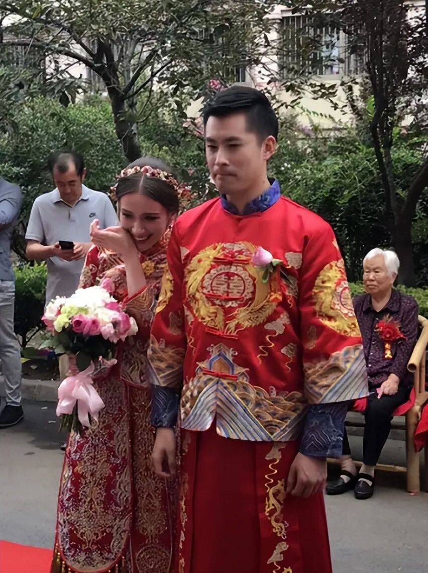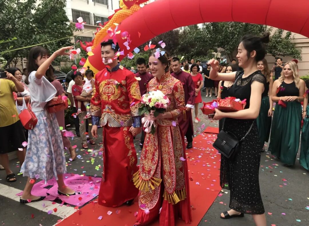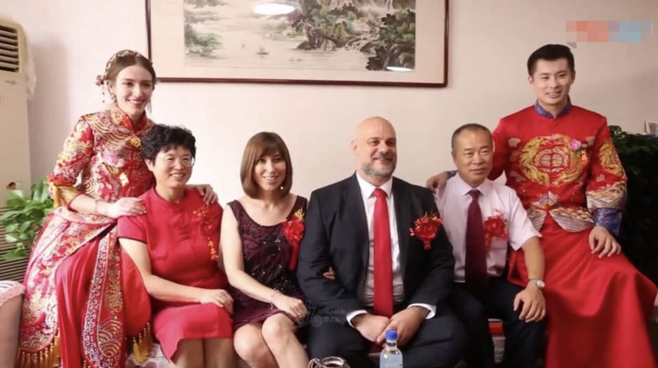 我们当时按照中国习俗办的婚礼,都穿着大红色的礼服,还有送亲环节,是我在中国的乌克兰好友来送我。