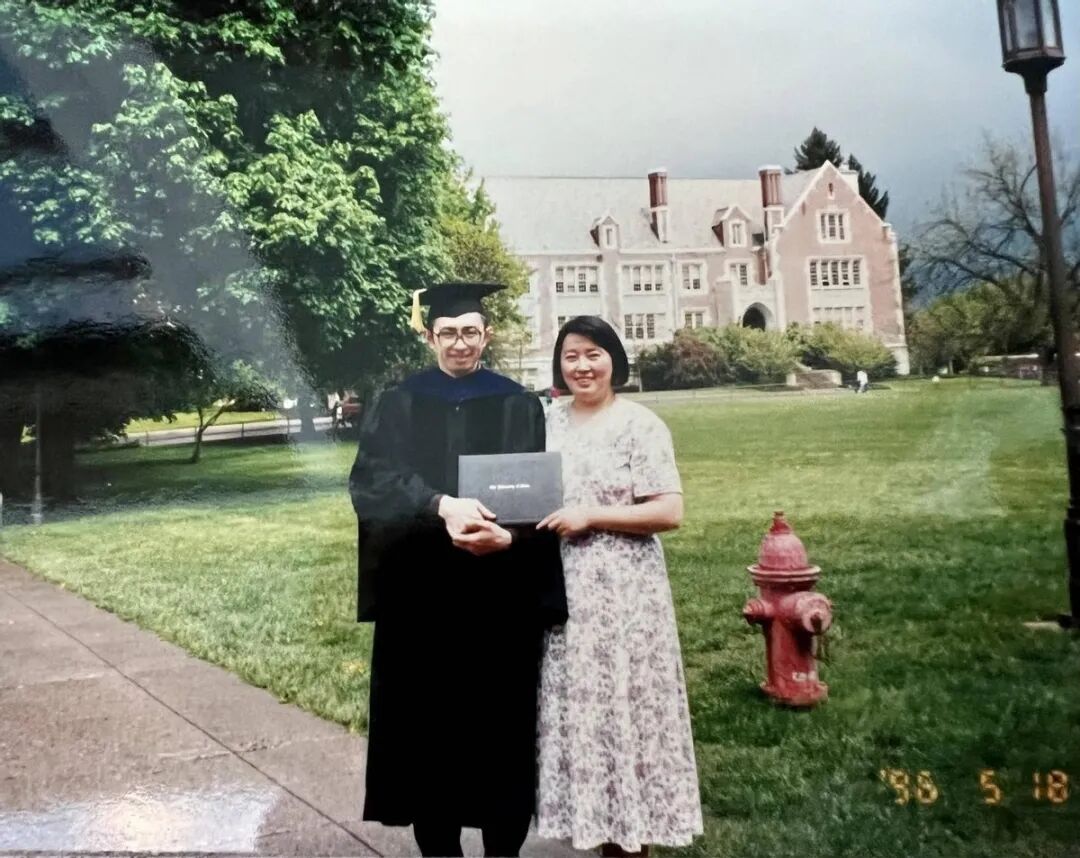 1996年,先生博士毕业。毕业典礼那天正好是我们结婚十周年的纪念日,可谓双喜临门。