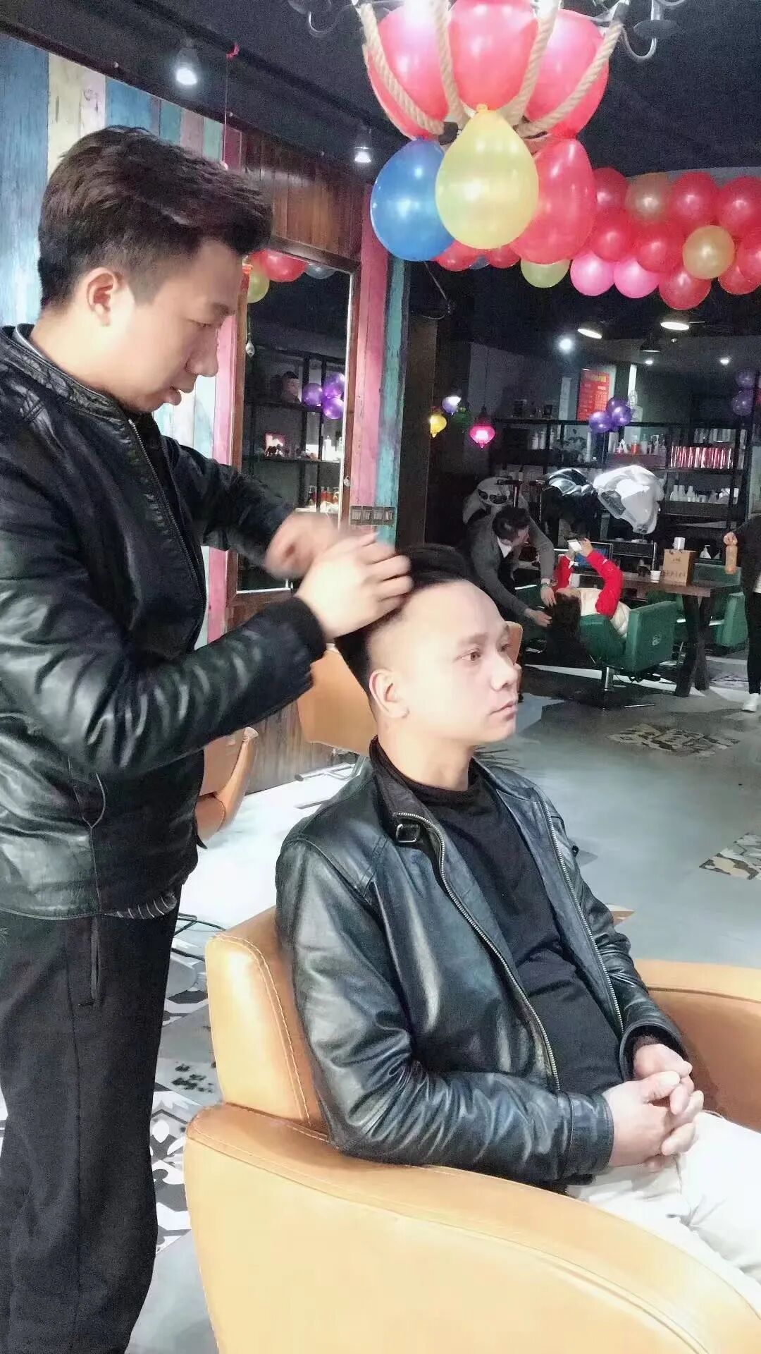 我第一次见到他,一个帅气的中国小伙子,看起来非常和善,一直是笑嘻嘻的,全程帮我洗头发、吹风、修理,耐心又温和,让人感觉很舒服。