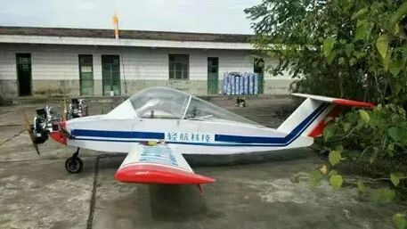 我这个飞机是单翼超轻型飞机重量120公斤,机身长5.5米,宽8.5米,高1.8。设计飞行速度为120-140km/h,最高可达160km/h,设计飞行高度为700-800米,可承载一人。