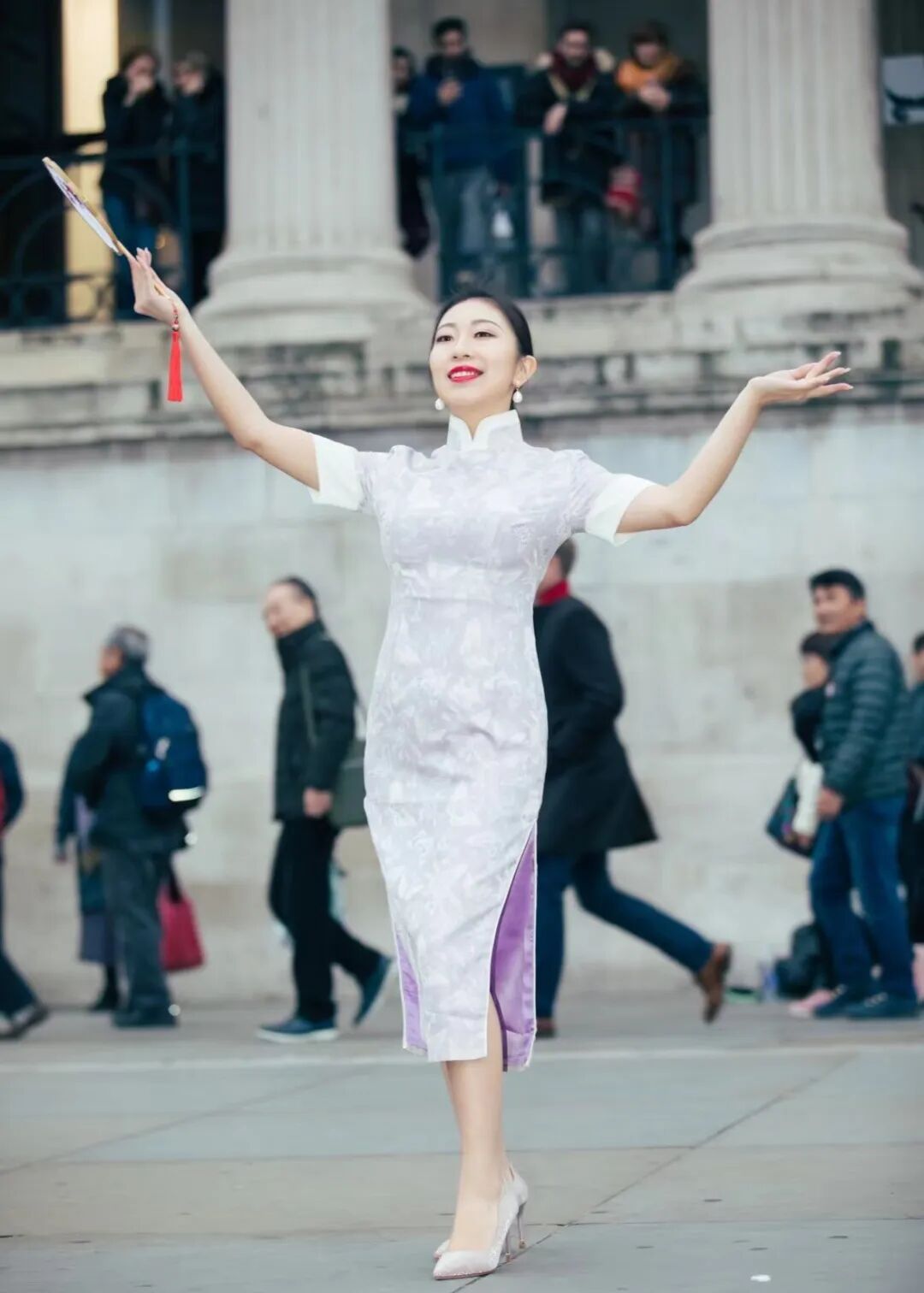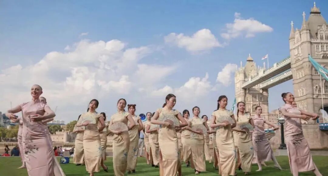 记得在“锦绣杭州·全球共舞”,全球旗袍日伦敦站中,那次活动,我编排和教学了25人的旗袍舞蹈和走秀,演绎了杭州市市歌《梦想天堂》。