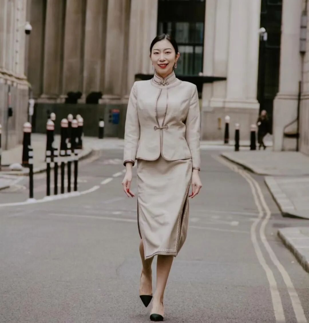 但还是在工作中,身着合适的旗袍去见客户。以这种润物细无声的方式,宣传旗袍文化。