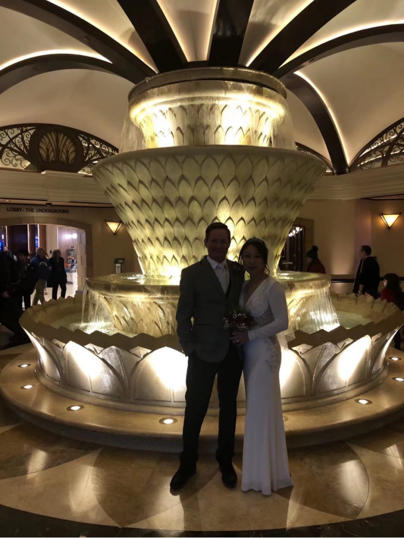 其实在加拿大只要有事实婚姻都是合法夫妻,所以很多人都选择不结婚领证,但奥恩为了让我开心起来,很郑重地在美国的拉斯维加斯安排了一场婚礼。