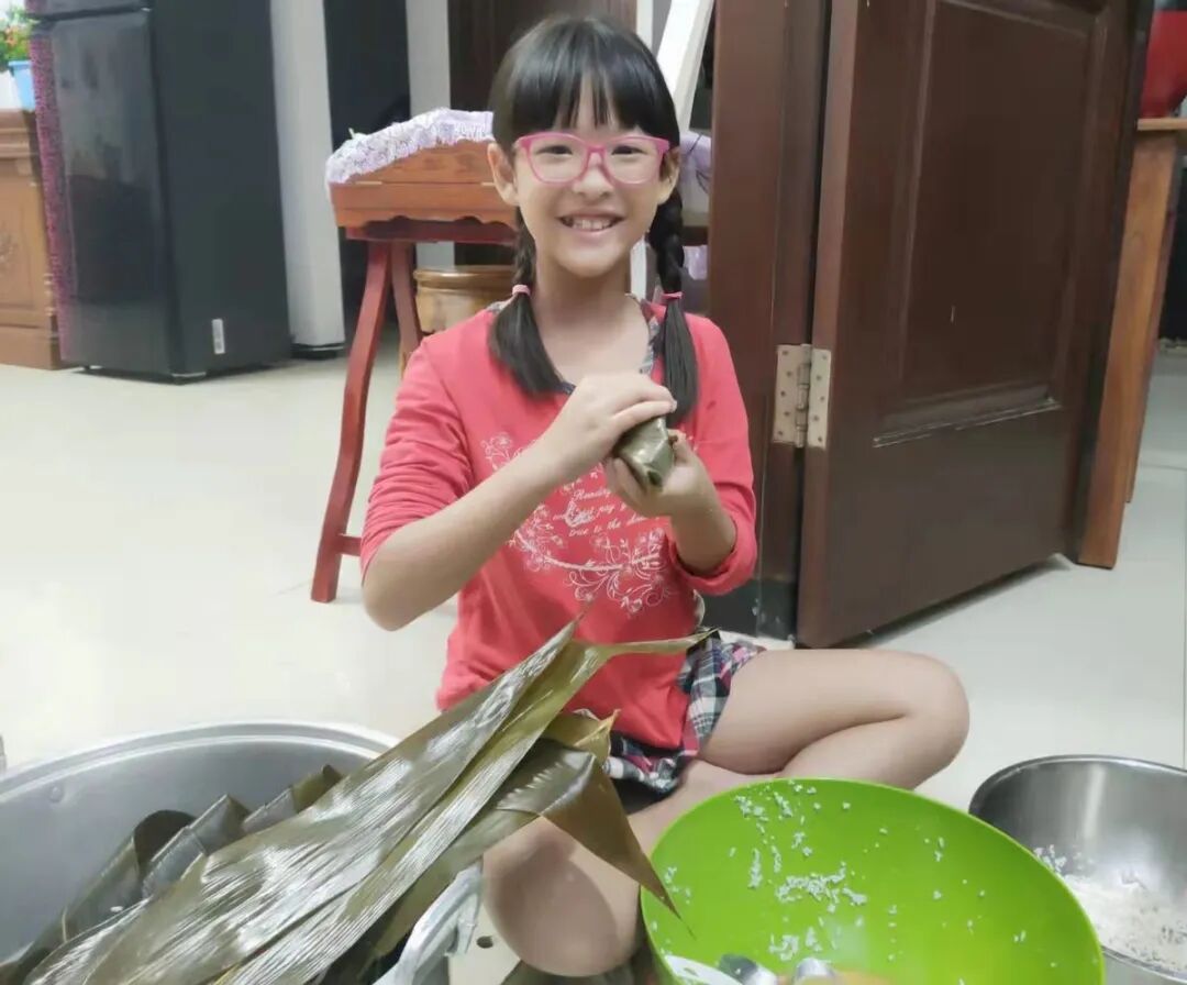 过中秋节和春节,教她们包粽子、包饺子、穿旗袍、唱爱国歌曲。大女儿朗诵《我眼中的中国》获得全校六个校区演讲比赛第一名。