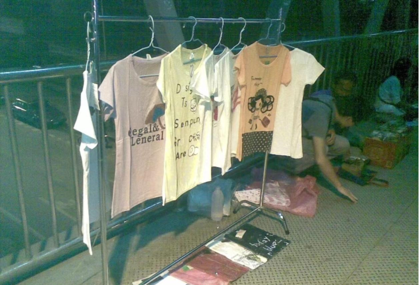 在泰国的天桥上放个晾衣架,挂上衣服就开卖,一晚上也能卖出好几件。当时就做了三个月,我们挣的钱就已经足够付房租、油费、吃饭等日常开销了。