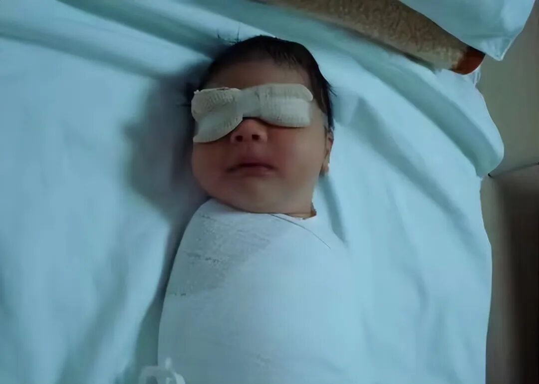 护士抱来的时候,裹得像一个蚕宝宝,眼睛也被蒙上了蝴蝶结的纱布。