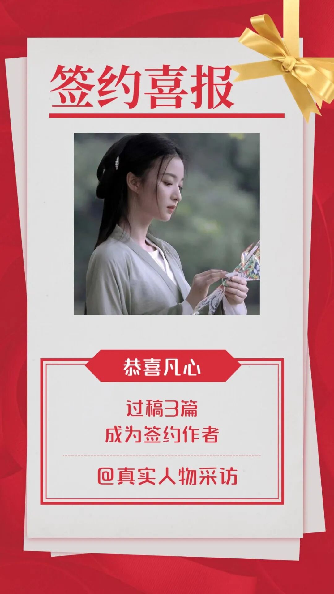 再也压制不住欣喜之情,把签约海报发给了老公,此时的他才重新对我刮目相看,并且发了两个大红包以示祝贺。还说以后会成为我坚强的后盾,全力支持我写作。