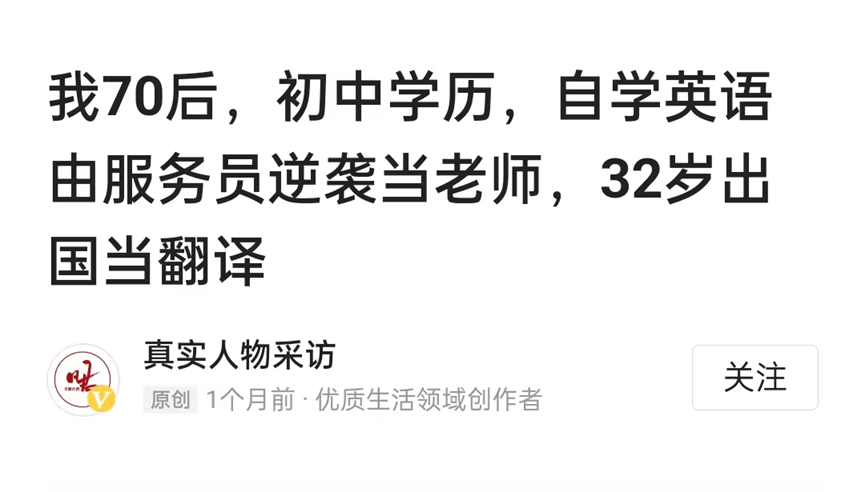 也许是冥冥之中的缘分,我刷到了“真实人物采访”的故事。出于写作人的敏感,立刻关注了账号,迫不及待地开始阅读文章。