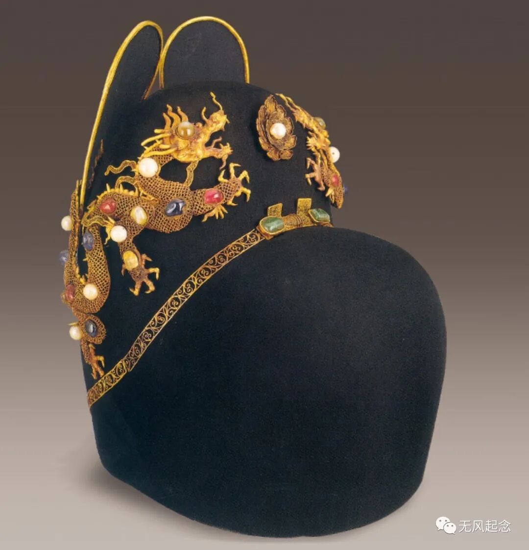 明代的翼善冠,牙头脚变得短以及向上折,有时会配上“二龙戏珠”的饰物。小编觉得造型像兔子耳,而古人就觉得像“善”字,因此命名为“翼善冠”。