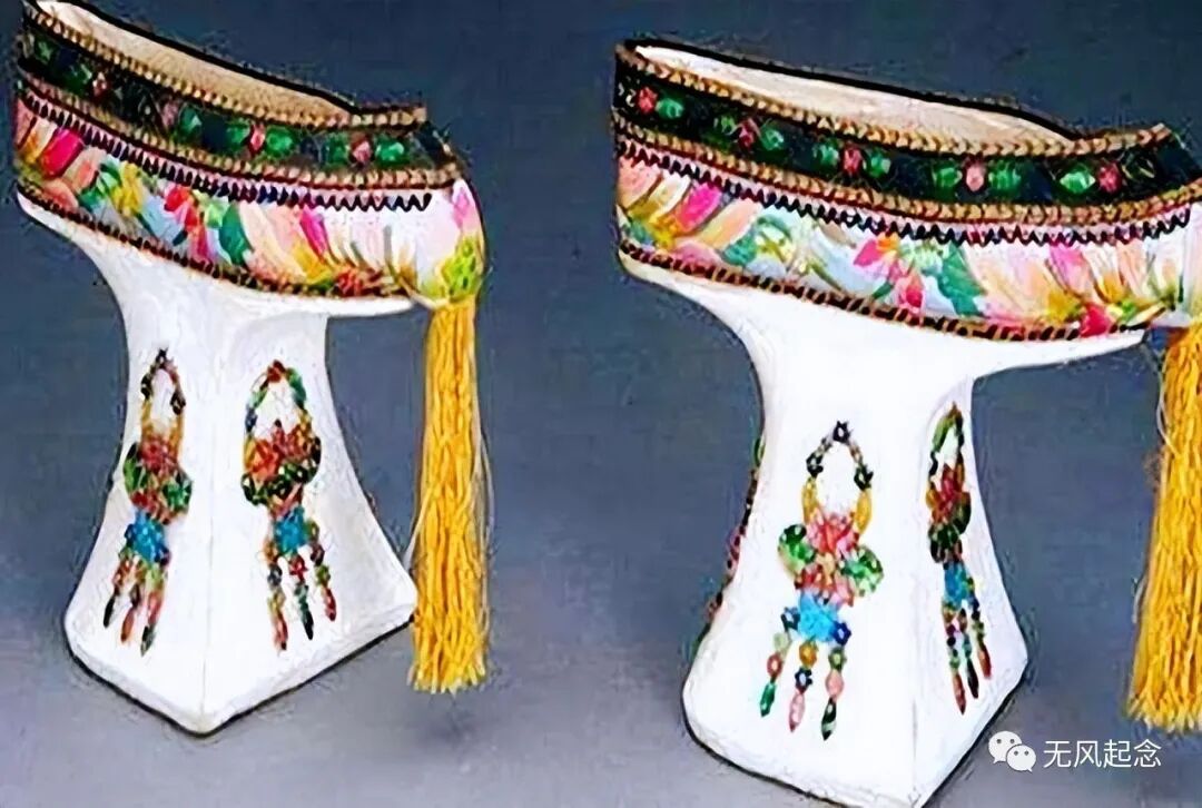 “花盆底”全称叫做“清代花盆底鞋”,也被称为“旗鞋”,是大清朝时贵族妇女才可以穿的鞋子。鞋底增高的部分是木质的,大概有5到10公分高,最高的“花盆底”达到了25公分,穿起来难度很大。“花盆底”的鞋跟,上面细、下 面宽,前面平、后面圆,走起路来,留下的脚印就像是马蹄留下的,因此又叫做“马蹄鞋”。