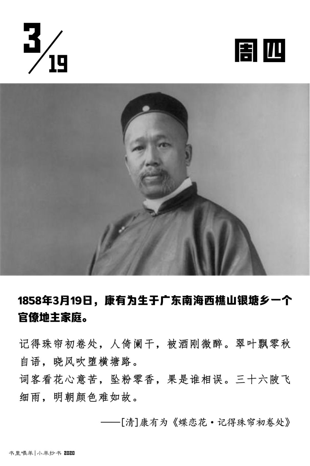1858年3月19日,康有为生于广东南海西樵山银塘乡一个官僚地主家庭。