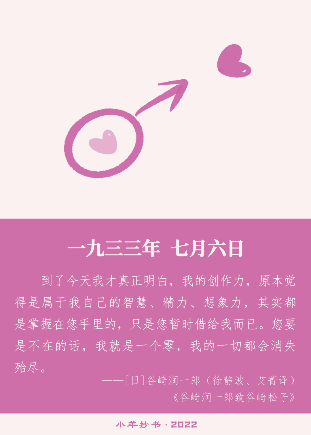 注:松子原姓森田,森田家属于在大阪颇为驰名的藤永田造船厂的永田家族,父亲森田安松是永田三十郎的长女松的儿子。松子最初与码头上有名的棉布批发商的独生子根津清太郎结婚,在昭和二年(1927)与谷崎润一郎相识。在昭和初期,谷崎文学代表作《盲目物语》《武州公秘话》《芦刈》《春琴抄》等女主角的原型都是松子。昭和九年(1934),松子与根津离婚;昭和十年(1935),谷崎与当时的妻子丁未子离婚,并在同年与松子结婚,成为终身伴侣。