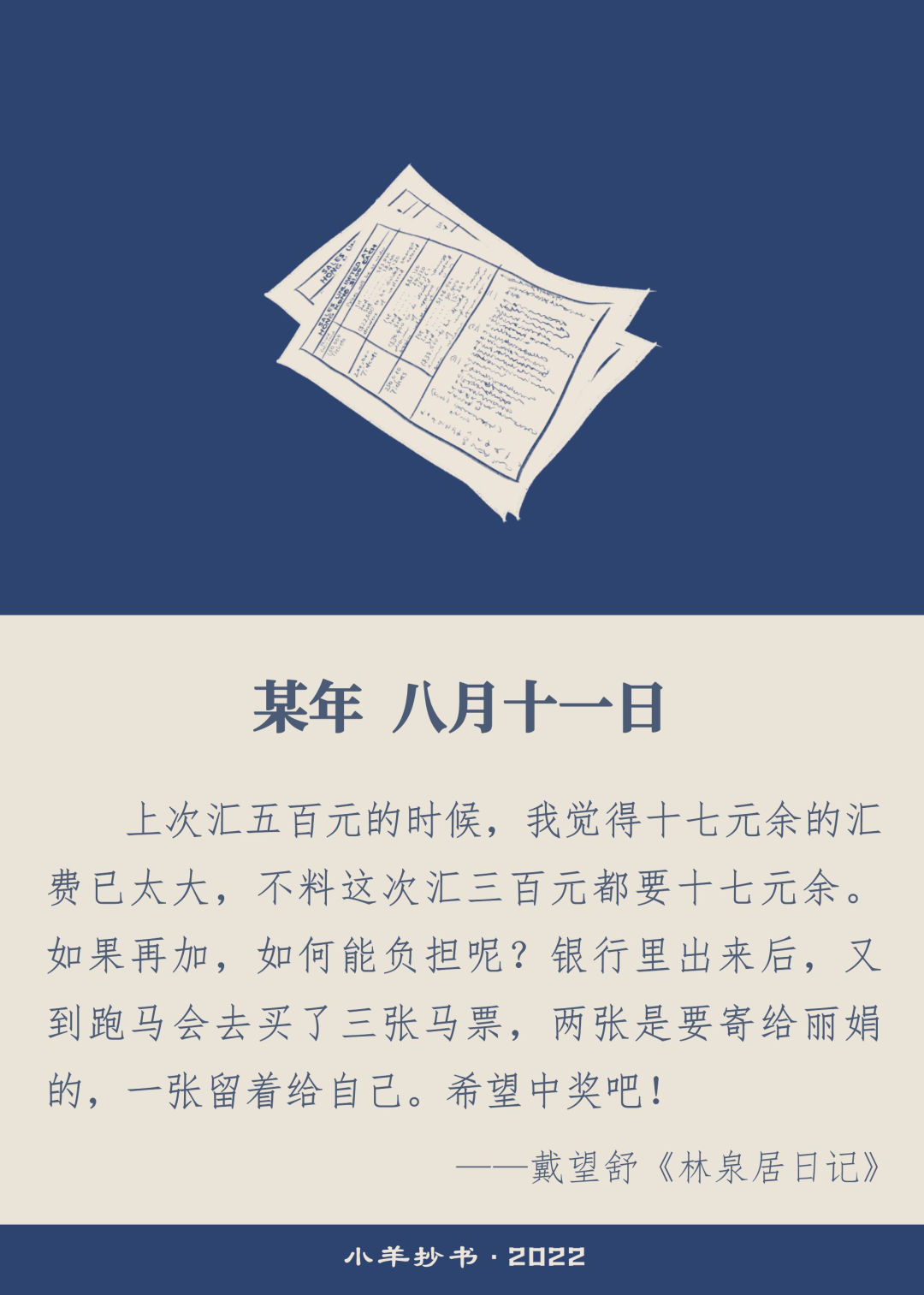 注:《林泉居日记》内封有“第三本”字样,无年份,记七、八、九三个月的事。从日记内容来看,可能是1941年。其时戴望舒在香港,担任《星岛日报》《星座》副刊编辑,家居薄扶林道的WOOD BROOK,一般人称“木屋”,戴望舒自译为“林泉居”。