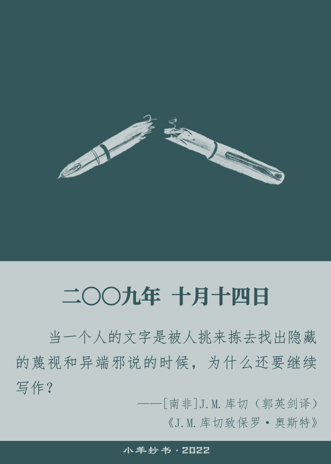 注:J.M库切收到一封英国读者的来信,这封信依据他的小说《慢人》中的主人公马里加纳·岳基奇的克罗地亚情妇对某家店主所说的一段反犹言论,谴责身为作者的库切是个反犹太主义者。库切十分绝望,致信保罗·奥斯特表达自己的担忧,以下为信件内容(摘自保罗·奥斯特和库切的通信集《此时此地》):