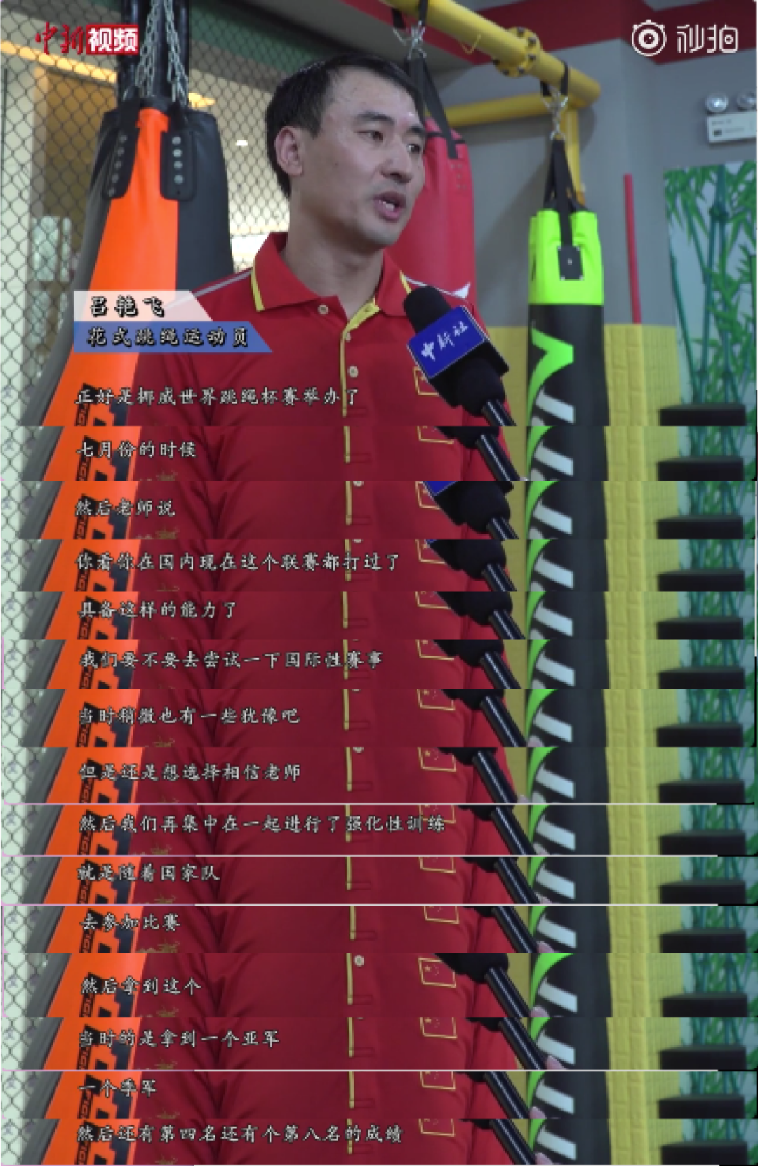 直到2019年在老师的鼓励之下,他走上了世界赛场,吕艳飞在2019年的WJR跳绳世界杯赛上夺得3×40秒交互绳接力亚军。