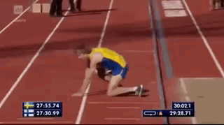 也许你在奥运会或是其他比赛场上看过跑者在终点线前失去平衡的冲刺画面,他们的身体在撞线之后好像失去自主控制般倒地抽搐。