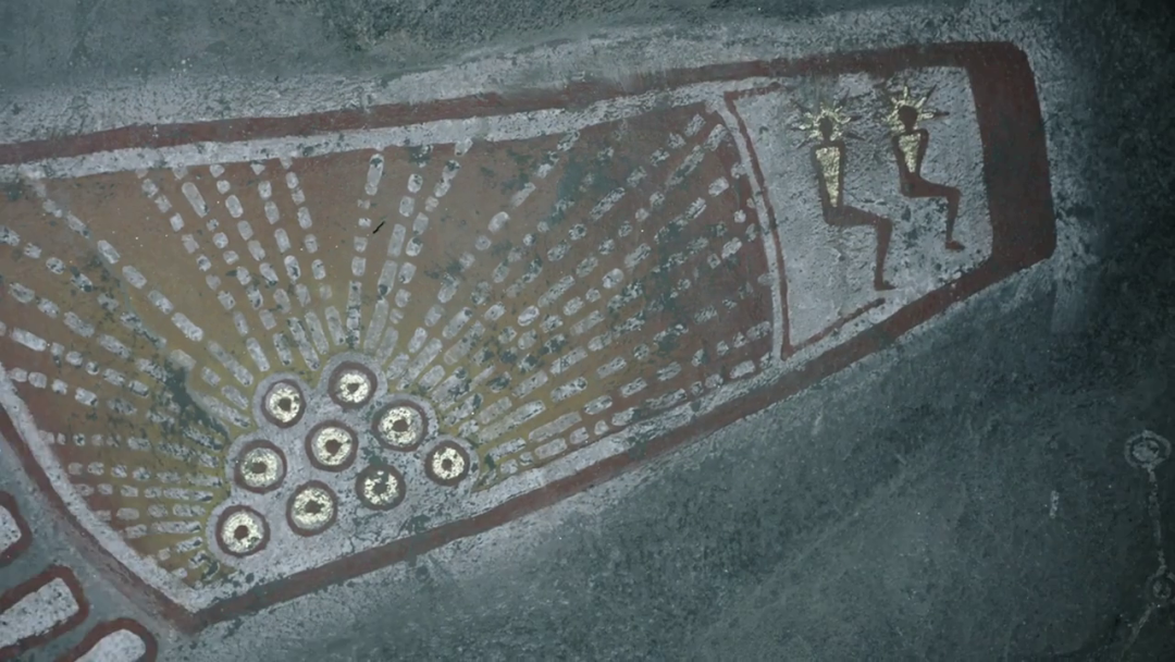 壁画中做在船头的两人,头上有着索尔太阳神的光芒,就很像密特拉教的使者,而后面搭载的,像不像做一只只眼睛,而死灵的终极武器,就是那双眼睛,也就是说他们搭载的是黑暗光子的科技。