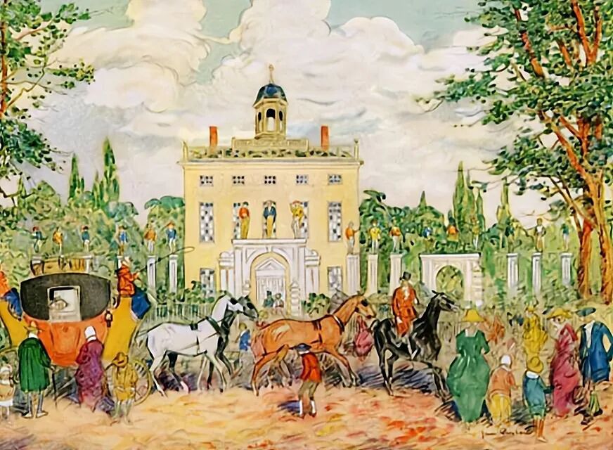 他买下了一处贵族庄园,搞起了事情,最显眼的是,在户外建起一个博物馆,立起40尊色彩鲜艳的木雕像。