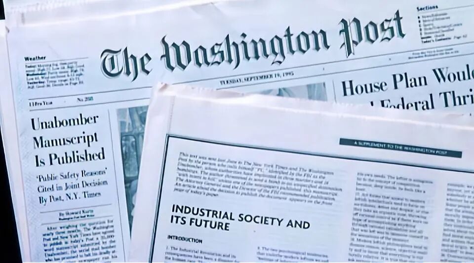 默里死后,《纽约时报》和《华盛顿邮报》都收到了一个包裹,那里面有一份长达78页的打印文章,题目叫《工业社会及其未来》。