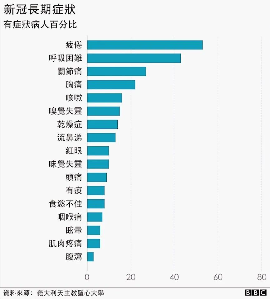 而此类症状的数据、信息,我们这边,和世卫组织也有,它指的当然就是新冠后遗症。
