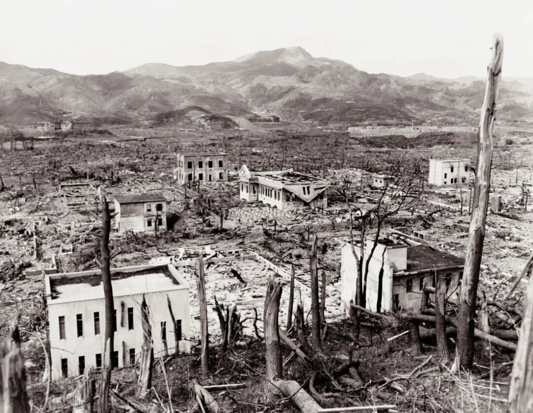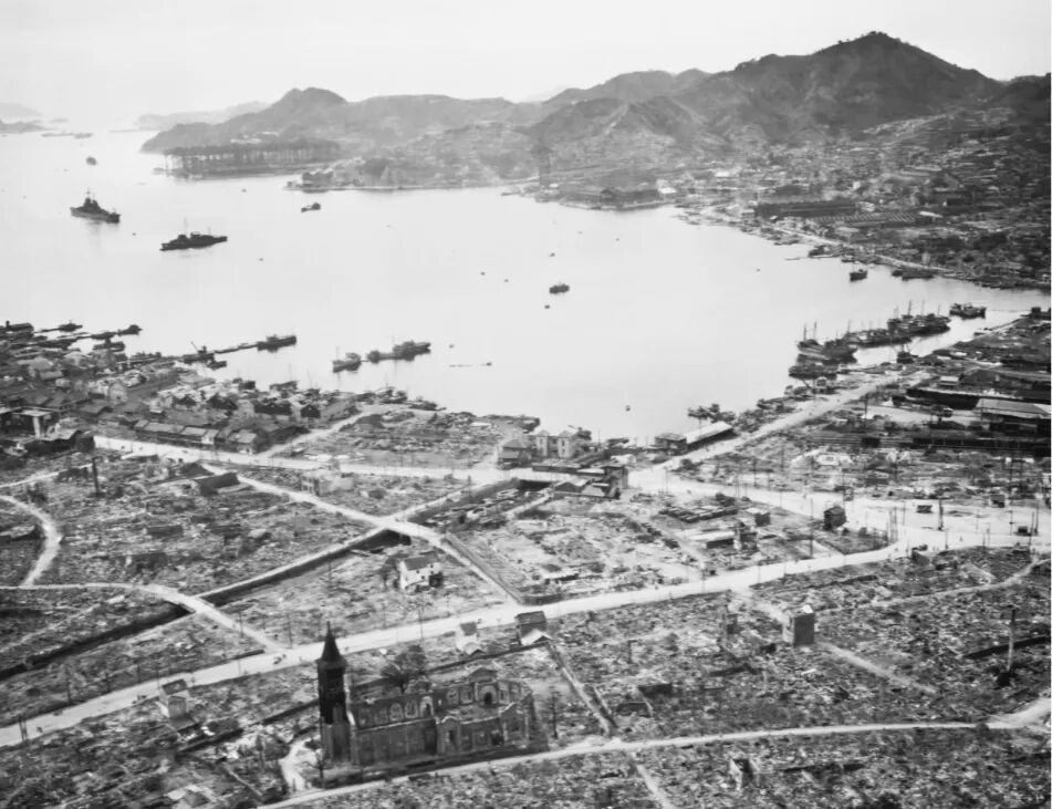 (爆炸前后的长崎,一座教堂依然挺立)