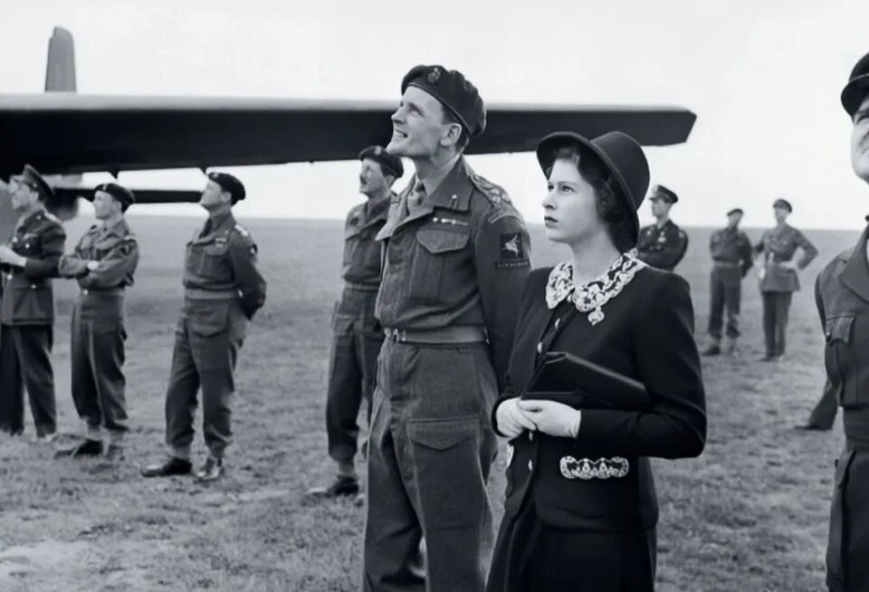 登陆日前夕,公主亲临现场,观看了英国空降部队的跳伞。