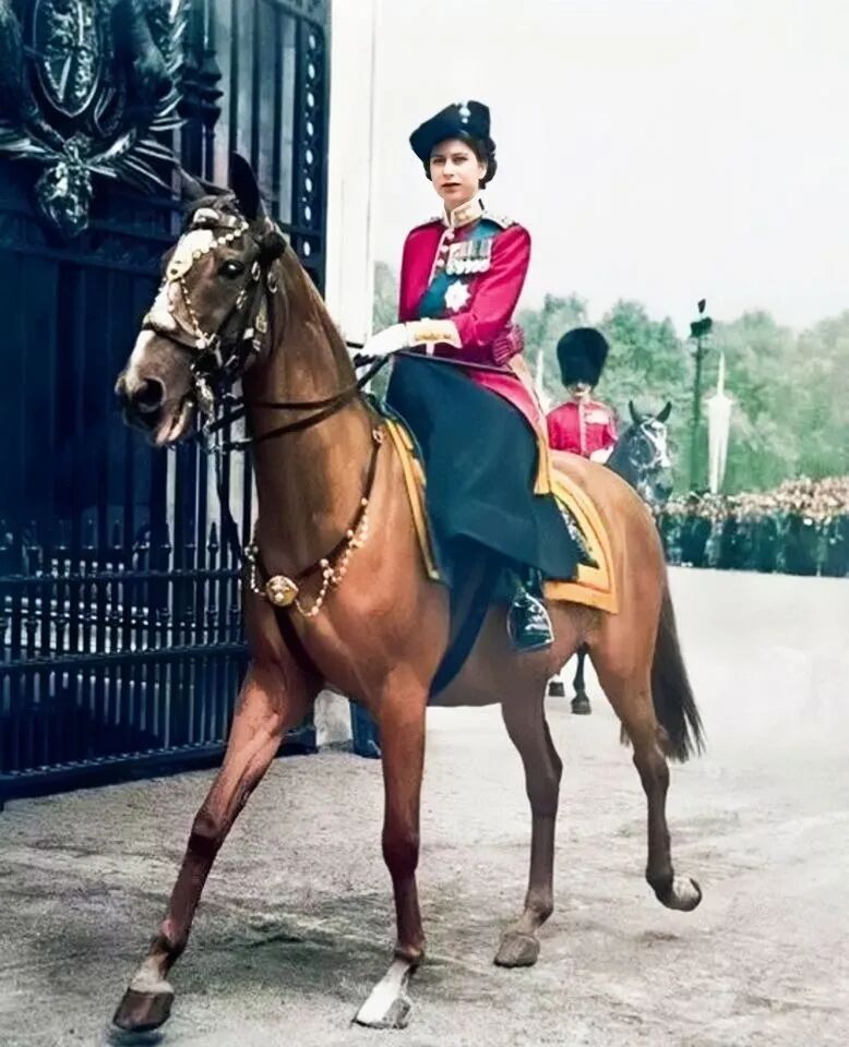 女王当兵期间,也学过打枪,她徐娘半老时骑在马背上的样子,也很有军人风范。