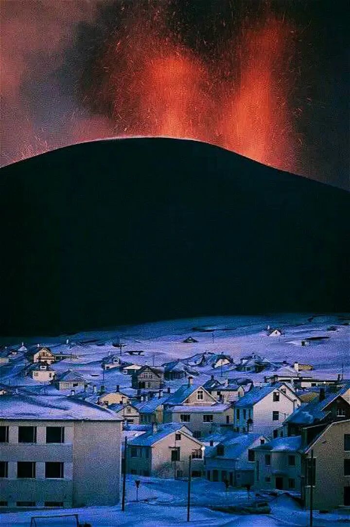 韦斯特曼纳是火山群岛,小小的赫马岛上有三座火山危立,1973年时,一场著名的火山爆发曾几乎将这里的建筑全部毁灭。