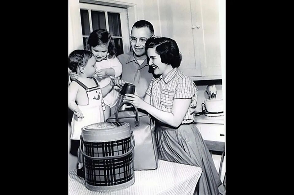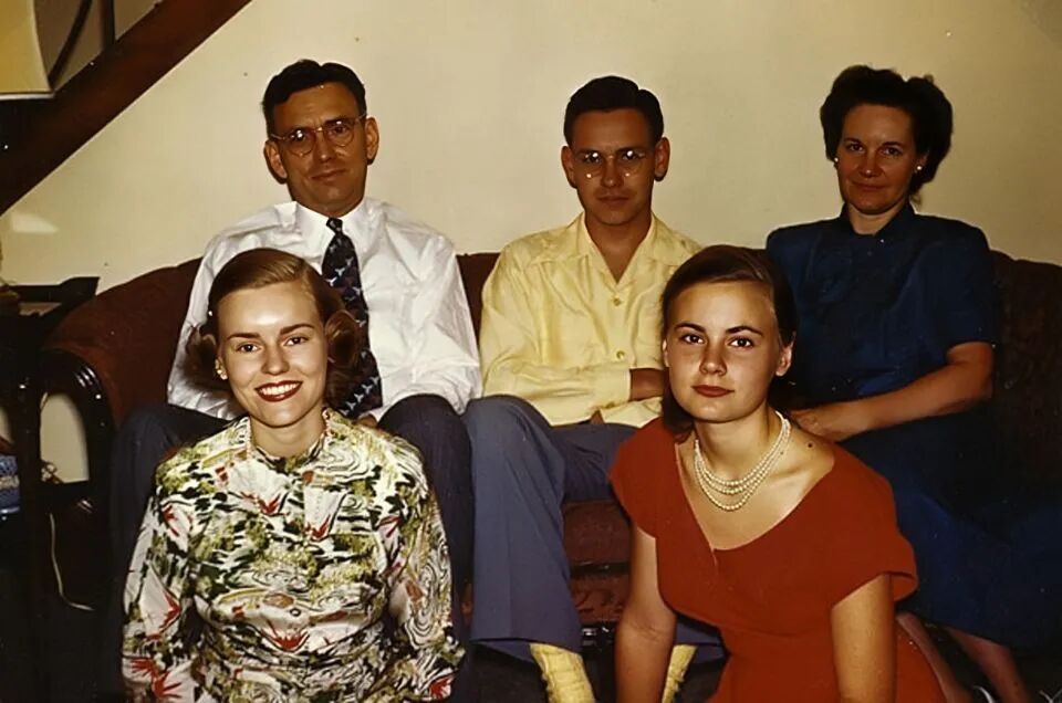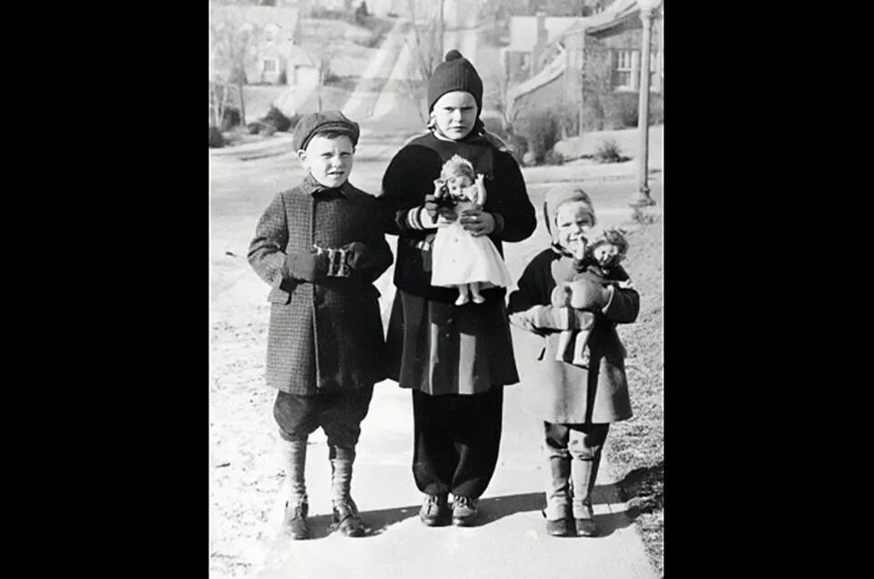 看吧,这是他小时候的照片,多丽丝和伯蒂在炫耀圣诞礼物,他拿着的据说是给客户找零钱的工具。