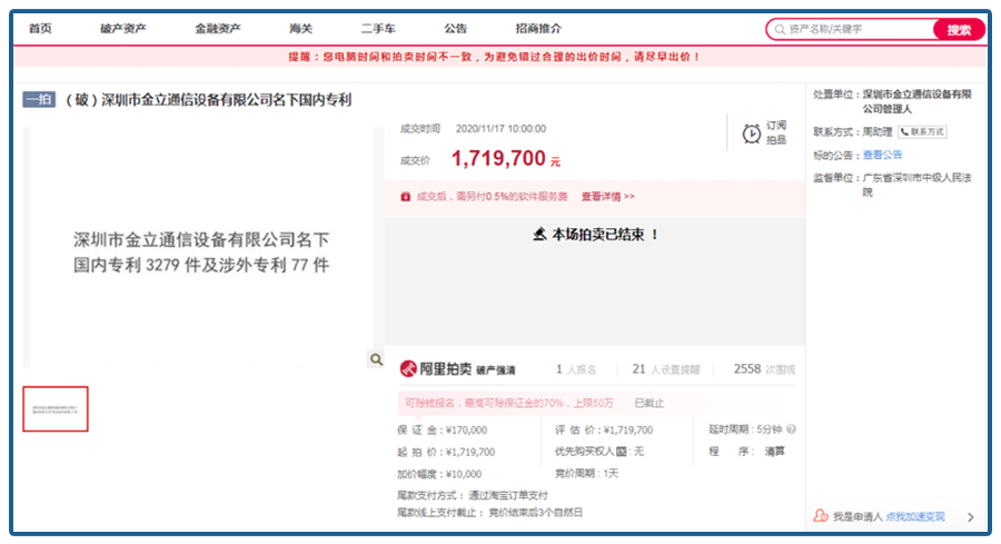 最近有个拍卖比较特别,卖的是专利,拍卖方估计大家也听说过,金立手机。