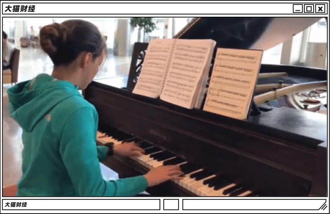 谷爱凌在微博上传过一张弹钢琴的照片,背景是候机厅,在这她也能摊开琴谱,心无旁骛地练习。