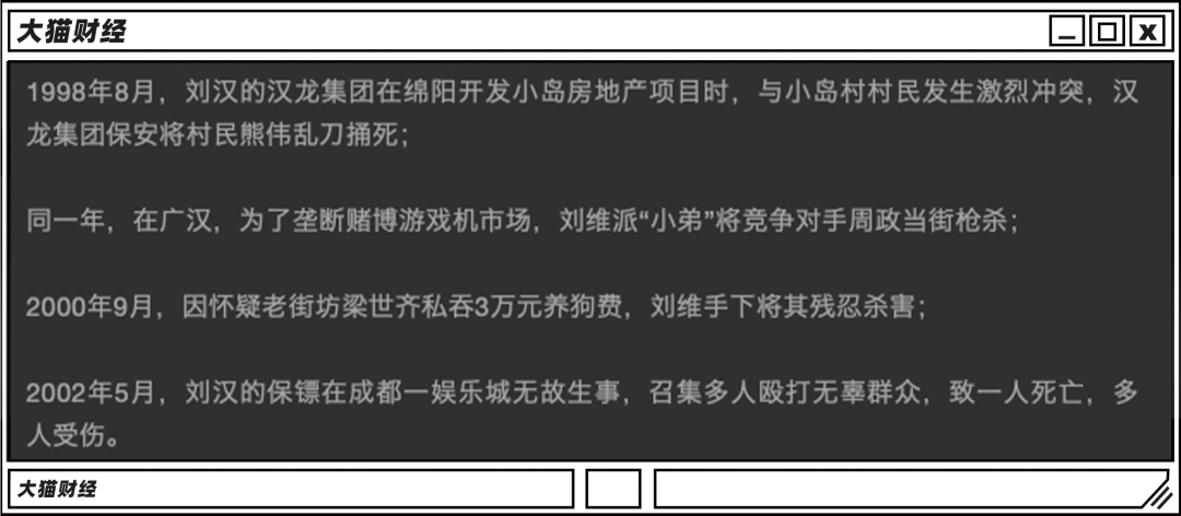 这些年,刘汉的汉龙集团已经涉足能源、电力、矿业开发、化工、产业、生物工程、地产开发、旅游开发、通信传媒、娱乐产业等多个领域。