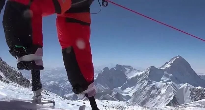 即便有几十年的运动基础,用假肢攀登高山,也比他预想的困难。假肢踩在岩石上、雪地中,触感难以传达到身体,夏伯渝一次次倒下,又一次次站起来。