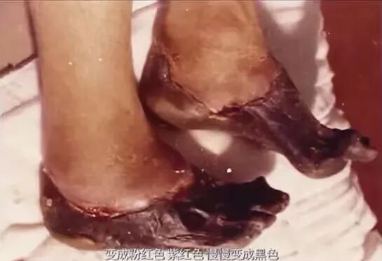 在到达医院后,高山靴脱不下来,不得不剪开,他才发现,自己的脚已冻得黑紫。