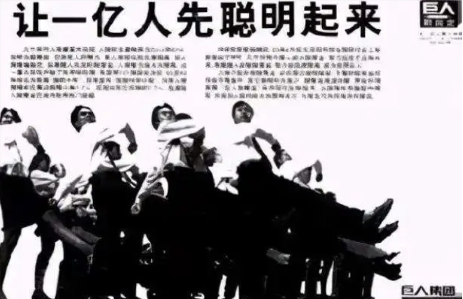 深知营销重要性的史玉柱,在脑黄金刚一诞生,就为他打造了一个相当霸气的广告语——让一亿人,先聪明起来。