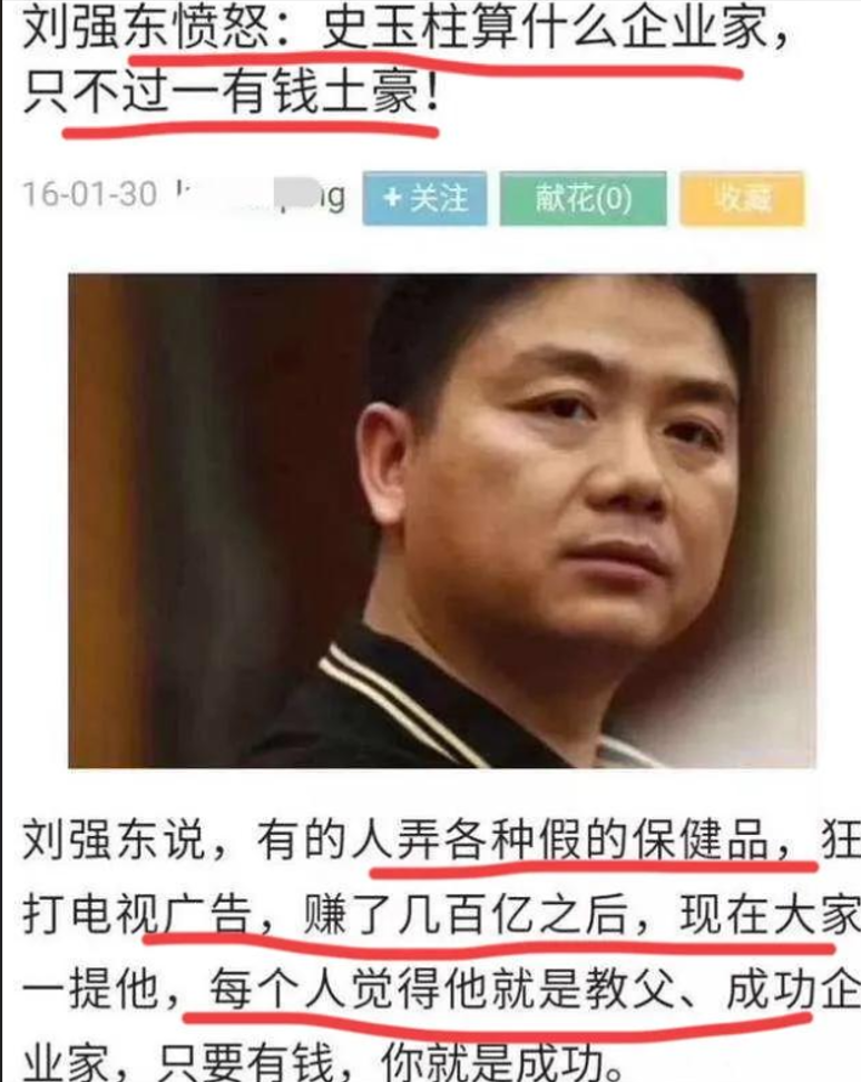 刘强东曾经评价石玉柱:“他根本不是企业家,只是一个土豪。”