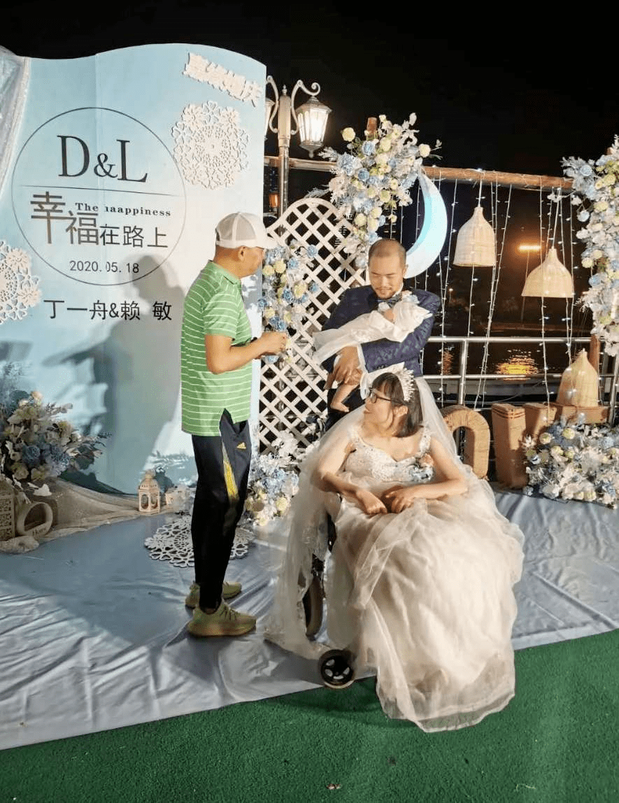 2020年5月19号,为了给足妻子仪式感,丁一舟在柳州游船上为赖敏补办了一场特殊的婚礼。