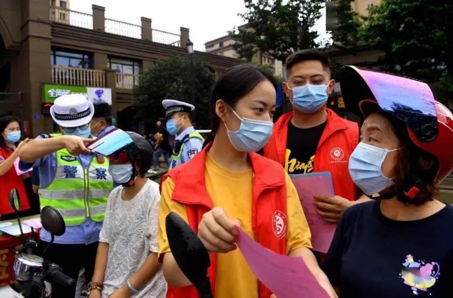 2020年抗击疫情期间,王倩成为一名志愿服务的“大白”,在社区进行走访居民、登记、测温、排查的工作。