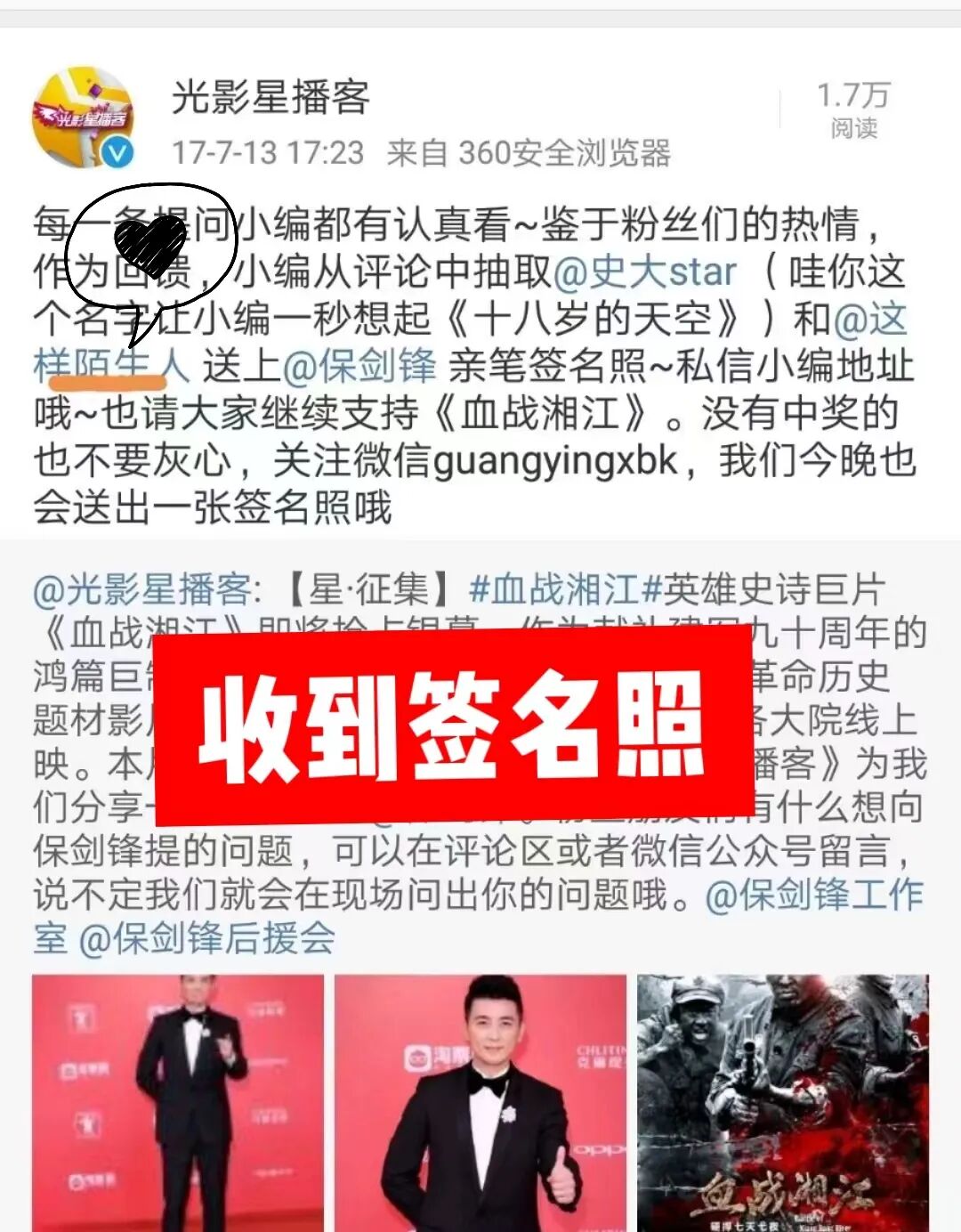 就在今年的5月20号,我居然见到了,自己粉了八年的偶像保剑锋。