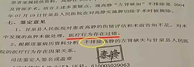 这也就意味着,高静的肾脏缺失,医院难辞其咎。