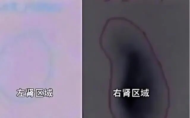 “从四医大做的ETC看,上面就是肾脏的造影,如果是萎缩或者移位,这个上面都应该有反应,但是,这个上面只有右肾,左肾就是空白,这就既排除了肾萎缩,也排除了肾移位”法医李峰说,“只有一种可能,就是手术摘除”。