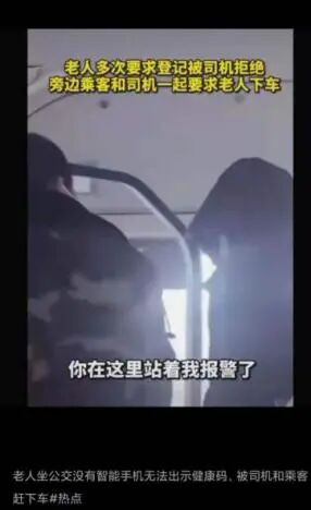 其他乘客也冲老人开了火:人不让你登记你还登记?下车下车!